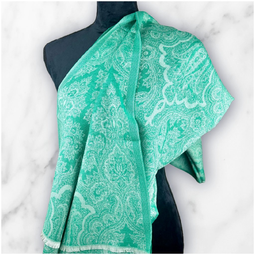 Měkká a vzdušná šála ze 100% bavlny s jemným zeleným nádechem. Elegantní doplněk po celý rok.