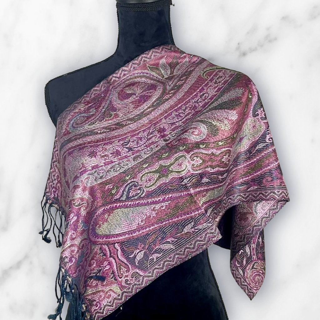 Tato úzká šála z hedvábí v tmavě fialových a černých tónech s decentním zeleným akcentem je ideální pro ty, kdo milují temné barvy s charakterem. Hedvábí jí dodává hebkost, lehkost a přirozený lesk. Díky svému úzkému tvaru se snadno nosí jako doplněk k halence, šatům nebo i přes jednoduchý svetr. Skvěle se hodí pro denní nošení i večerní příležitosti, kdy chcete dodat outfitu nenápadný, ale výrazný detail.