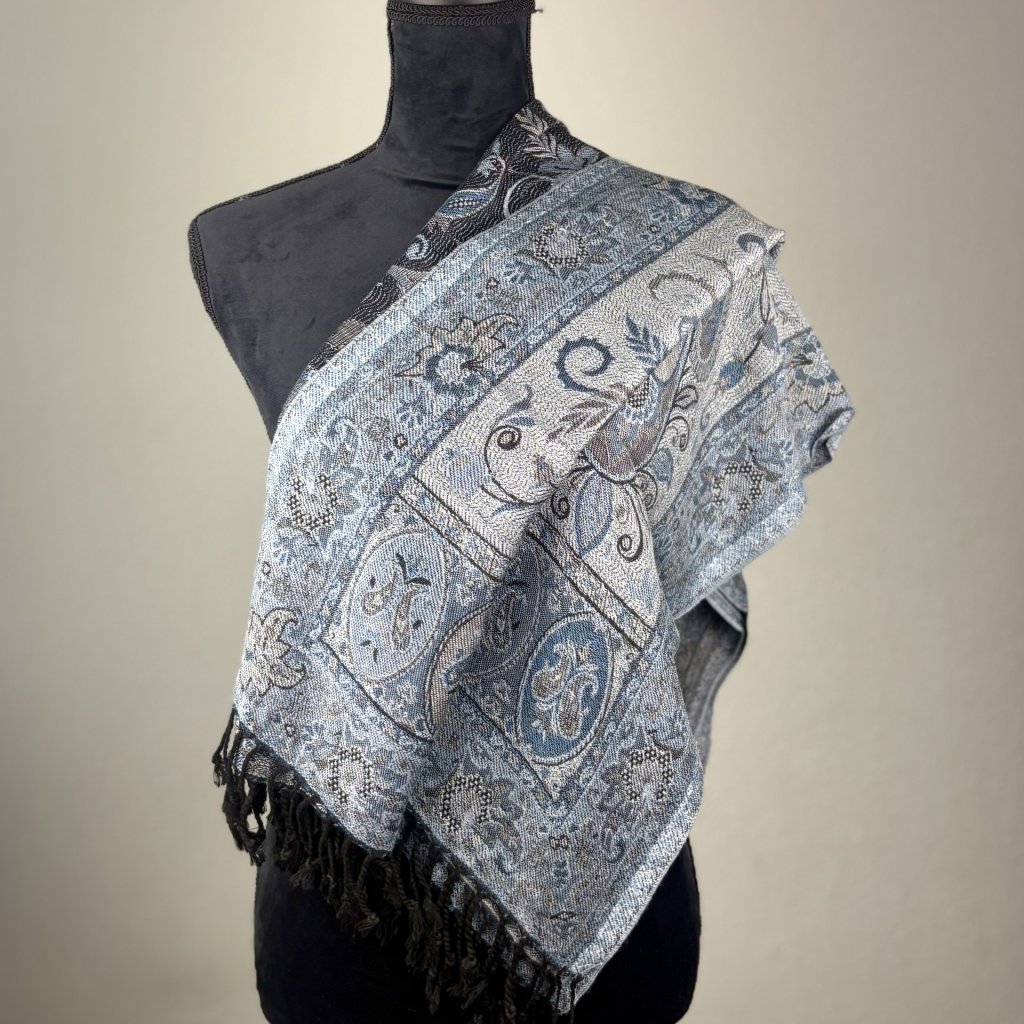 Viskózová šála v černo-modrých odstínech s orientálním vzorem