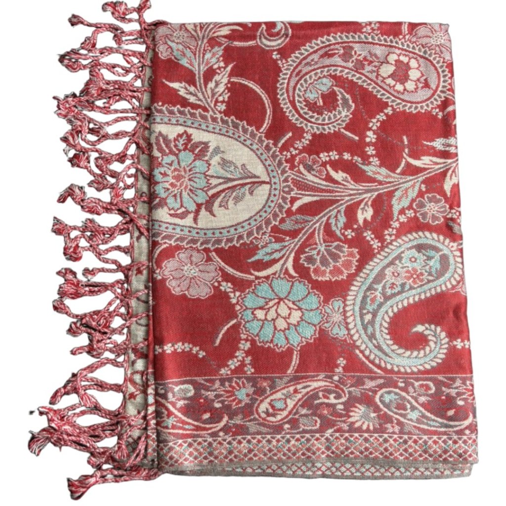 Viskózová šála v červeno-béžových odstínech s orientálním vzorem
